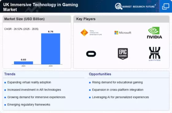 The UK immersive technology in gaming market is witnessing a growing demand for interactive entertainment experiences. Gamers are increasingly seeking more engaging and participatory forms of entertainment, which immersive technologies can provide. This shift in consumer preferences is reflected in the rising popularity of immersive gaming experiences that blend storytelling with interactive gameplay. Recent surveys indicate that approximately 60% of UK gamers express a preference for games that utilize immersive technology, such as VR and AR. This demand is prompting developers to invest in creating more innovative and immersive titles, thereby driving growth within the UK immersive technology in gaming market. As a result, the industry is likely to expand, catering to the evolving tastes of consumers.