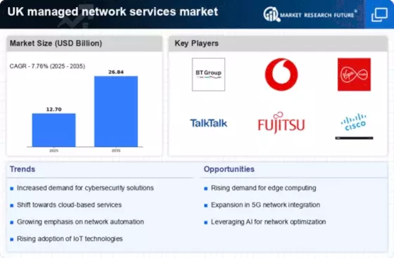 The UK managed network services market is experiencing a growing need for network reliability as businesses increasingly depend on uninterrupted connectivity for their operations. With the rise of remote work and digital transformation, organizations are seeking robust network solutions that ensure high availability and performance. According to recent data, 75% of UK businesses consider network reliability a top priority, driving demand for managed services that can provide proactive monitoring and support. This trend indicates that companies are willing to invest in managed network services to mitigate risks associated with downtime, thereby enhancing their operational efficiency and customer satisfaction.