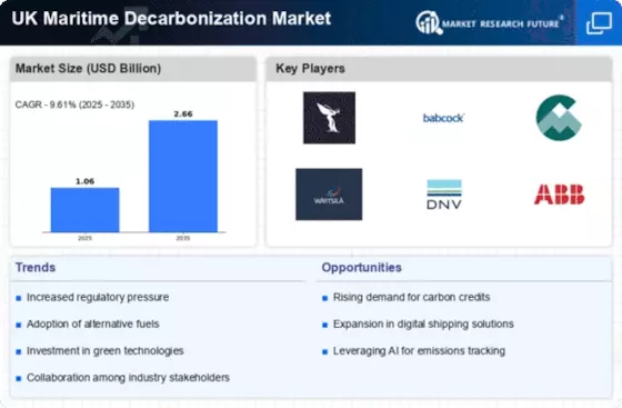 Growing environmental awareness among consumers and businesses is driving change within the UK Maritime Decarbonization Market. As public concern regarding climate change intensifies, there is an increasing demand for sustainable shipping practices. Companies are now prioritizing environmental responsibility, which influences their operational decisions. This shift is reflected in the rising number of shipping firms committing to carbon neutrality and sustainable practices. For example, the UK Chamber of Shipping has reported that a significant percentage of its members are actively working towards reducing their carbon emissions. This heightened awareness fosters a competitive landscape where sustainability becomes a key differentiator in the UK Maritime Decarbonization Market.