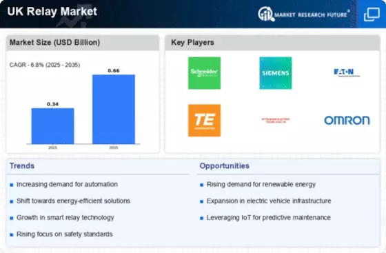 The UK Relay Market is significantly influenced by advancements in automation and control systems. Industries across the UK are increasingly adopting automated solutions to enhance operational efficiency and reduce human error. This trend is particularly evident in manufacturing and transportation sectors, where relay systems play a crucial role in controlling machinery and ensuring safety protocols. The market for industrial automation in the UK is projected to grow at a compound annual growth rate of 7.5% from 2025 to 2030. Consequently, the demand for sophisticated relay technologies that can integrate seamlessly with automated systems is likely to rise, further driving the UK Relay Market.