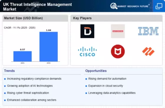 The UK Threat Intelligence Management Market is experiencing a surge in demand due to the increasing frequency and sophistication of cyber threats. Reports indicate that cybercrime costs the UK economy approximately 27 billion GBP annually, prompting organizations to invest in threat intelligence solutions. As cybercriminals adopt advanced tactics, the need for proactive threat detection and response mechanisms becomes paramount. This trend is likely to drive the growth of the market, as businesses seek to safeguard sensitive data and maintain operational integrity. Furthermore, the UK government has emphasized the importance of cybersecurity, leading to increased funding for initiatives aimed at enhancing national resilience against cyber threats. Consequently, organizations are compelled to adopt comprehensive threat intelligence strategies to mitigate risks and protect their assets.
