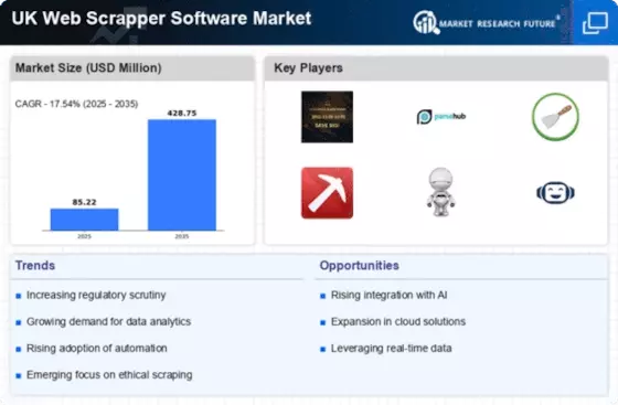 In the UK, the regulatory landscape surrounding data privacy is evolving, which has implications for the UK Web Scrapper Software Market Industry. The General Data Protection Regulation (GDPR) and other local data protection laws necessitate that businesses adopt compliant web scraping practices. This has led to an increased focus on ethical data collection methods, prompting software developers to enhance their offerings with features that ensure compliance. Companies are now more cautious about how they collect and use data, which may drive demand for web scraping tools that prioritize legal and ethical standards. As organizations navigate these regulations, the UK Web Scrapper Software Market Industry is likely to see a shift towards solutions that facilitate responsible data usage.