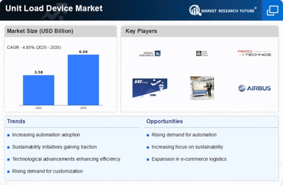 The Unit Load Device Market is benefiting from the robust growth of the logistics and supply chain sector. As businesses expand their operations and seek to optimize their supply chains, the demand for efficient cargo handling solutions increases. The logistics sector is projected to grow at a rate of around 6% annually, driven by globalization and the need for faster delivery times. This growth creates a favorable environment for the adoption of unit load devices, which facilitate the efficient movement of goods. Consequently, the market for ULDs is expected to expand as logistics companies invest in modernizing their cargo handling capabilities.