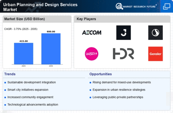 The competitive landscape in North America is robust, featuring key players such as AECOM, Jacobs, and Stantec. The United States and Canada are at the forefront, with major urban centers investing heavily in planning and design services. The presence of leading firms like WSP Global and HDR underscores the region's commitment to high-quality urban development. As cities evolve, the demand for comprehensive planning services is expected to grow, solidifying North America's market position.