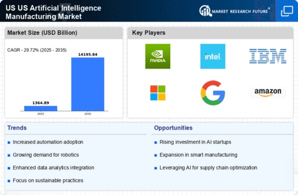 The US Artificial Intelligence Ai In Manufacturing Market is experiencing a notable surge in demand for smart manufacturing solutions. This trend is driven by the need for increased efficiency and productivity in manufacturing processes. According to recent data, the market for smart manufacturing is projected to reach approximately 300 billion USD by 2026. Companies are increasingly adopting AI technologies to optimize operations, reduce downtime, and enhance product quality. The integration of AI in manufacturing allows for real-time monitoring and data analysis, which can lead to significant cost savings and improved decision-making. As manufacturers strive to remain competitive, the adoption of AI-driven smart manufacturing solutions is likely to become a standard practice, further propelling the growth of the US Artificial Intelligence Ai In Manufacturing Market.