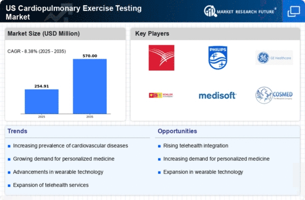There is a growing trend towards health awareness and preventive care among the US population, which is positively impacting the cardiopulmonary exercise-testing market. Individuals are becoming more proactive about their health, seeking regular check-ups and screenings to prevent potential health issues. This shift is reflected in the increasing number of health and wellness programs offered by employers and healthcare organizations. As more people recognize the importance of cardiovascular health, the demand for cardiopulmonary exercise testing is expected to rise. This trend indicates a potential for market growth as healthcare providers respond to the increasing need for preventive health measures.