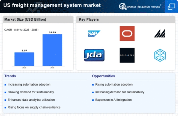 The freight management system market is driven. by the demand for real-time visibility and transparency in supply chain operations. Customers and businesses alike expect timely updates on shipment status, which necessitates the implementation of advanced tracking systems. In 2025, approximately 70% of logistics companies are expected to adopt real-time tracking technologies to enhance customer satisfaction and operational efficiency. This trend indicates a shift towards more transparent logistics processes, compelling companies to invest in freight management systems that provide comprehensive visibility throughout the supply chain.
