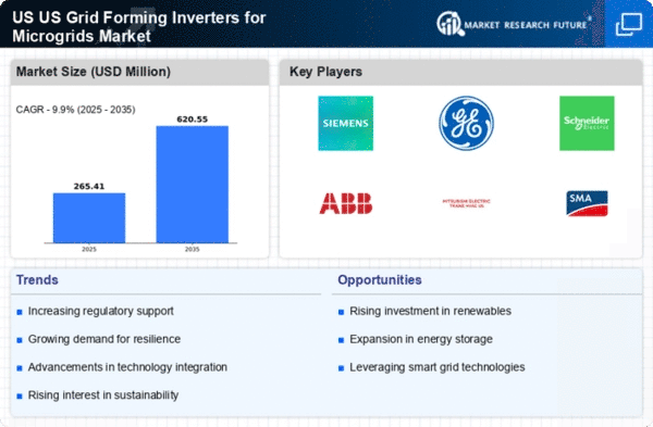The US Grid Forming Inverters For Microgrids Market is significantly influenced by the increasing integration of renewable energy sources. With the US government setting ambitious targets for renewable energy generation, the demand for grid forming inverters is expected to rise. These inverters facilitate the incorporation of solar, wind, and other renewable sources into microgrid systems, allowing for a more sustainable energy mix. The US Energy Information Administration reports that renewable energy accounted for approximately 20% of total electricity generation in 2025, a figure that is anticipated to grow. This trend underscores the importance of grid forming inverters in supporting the transition to a cleaner energy future, thereby propelling market growth.