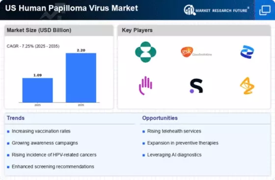 The growing awareness of sexual health and its implications for overall well-being is a significant driver for the US Human Papilloma Virus Market. Educational campaigns aimed at informing the public about HPV transmission, prevention, and the importance of vaccination are gaining momentum. As individuals become more informed about the risks associated with HPV, there is a corresponding increase in demand for vaccines and screening services. This heightened awareness is particularly evident among young adults and parents of adolescents, who are more likely to seek vaccination for their children. Consequently, the US Human Papilloma Virus Market is likely to benefit from this trend, as increased awareness translates into higher vaccination rates and greater utilization of diagnostic services.