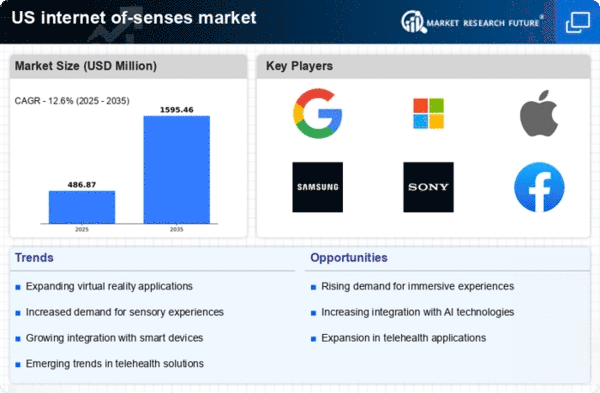 The internet of-senses market is experiencing a surge due to rapid technological advancements in sensory devices. Innovations in haptic feedback, olfactory sensors, and augmented reality are enhancing user experiences across various sectors. For instance, the integration of advanced haptic technology in gaming and virtual reality applications is projected to grow by 25% annually, indicating a robust demand for immersive experiences. Furthermore, the development of olfactory technology for virtual environments is gaining traction, with potential applications in marketing and entertainment. As these technologies evolve, they are likely to drive the internet of-senses market, creating new opportunities for businesses to engage consumers in novel ways.