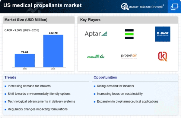 The medical propellants market is experiencing growth due to the rising incidence of respiratory diseases such as asthma and chronic obstructive pulmonary disease (COPD) in the US. According to the CDC, approximately 25 million Americans have asthma, and this number is expected to rise. As a result, the demand for inhalers and nebulizers, which utilize medical propellants, is increasing. This trend indicates a growing need for effective delivery systems that can administer medication directly to the lungs. The medical propellants market is likely to benefit from this surge in demand. Healthcare providers are seeking efficient solutions to manage these chronic conditions. Furthermore, the market is projected to expand as more patients require long-term treatment options, thereby driving innovation and investment in propellant technologies.
