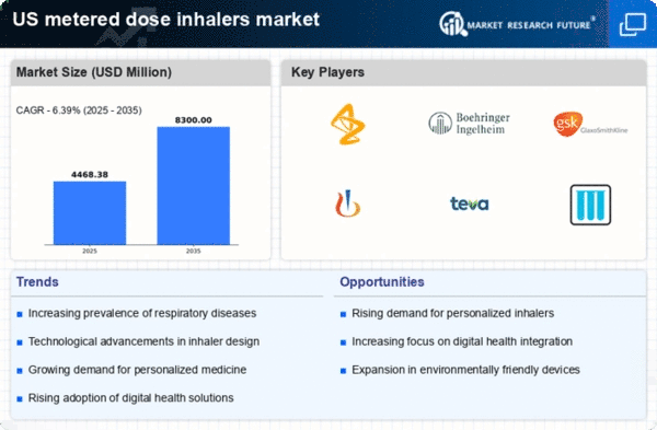 The increasing incidence of respiratory diseases such as asthma and chronic obstructive pulmonary disease (COPD) is a primary driver for the metered dose-inhalers market. According to the Centers for Disease Control and Prevention (CDC), approximately 25 million Americans have asthma, and the prevalence of COPD is also on the rise. This growing patient population necessitates effective treatment options, leading to heightened demand for metered dose inhalers. The metered dose-inhalers market is likely to experience substantial growth as healthcare providers seek to offer patients reliable and efficient delivery systems for medication. Furthermore, the aging population in the US, which is more susceptible to respiratory conditions, further amplifies this trend, indicating a sustained need for inhalation therapies.