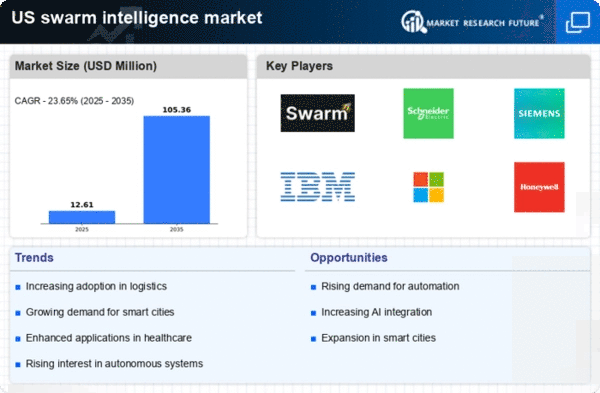 There is a growing awareness of environmental sustainability that is impacting the swarm intelligence market. As organizations strive to reduce their carbon footprints and enhance resource efficiency, swarm intelligence offers innovative solutions for environmental monitoring and management. For example, swarm-based systems can be deployed for precision agriculture, optimizing resource use while minimizing waste. The market for precision agriculture is expected to reach $12 billion by 2027, highlighting the potential for swarm intelligence applications in sustainable practices. This increasing focus on sustainability may lead to greater adoption of swarm intelligence technologies, as businesses seek to align their operations with environmentally friendly initiatives.