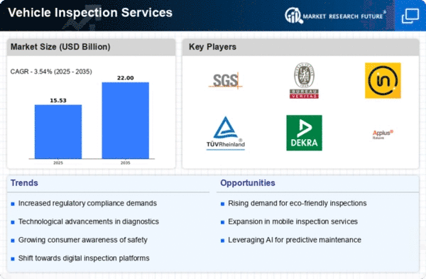The Middle East and Africa region is emerging as a developing market for vehicle inspection services, with a projected size of 1.5 USD Billion by 2025. The growth is primarily driven by increasing vehicle registrations and a growing awareness of road safety. Governments are beginning to implement regulations that mandate regular inspections, which is expected to further stimulate market demand in the coming years.