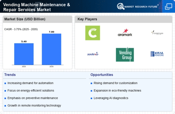 Europe's Vending Machine Maintenance & Repair Services Market is valued at 1.5 billion, driven by a growing trend towards automation and convenience in consumer services. The region benefits from stringent regulations that promote hygiene and safety, encouraging businesses to invest in regular maintenance. Countries like Germany and the UK are at the forefront, with increasing vending machine installations in public spaces and workplaces. The competitive landscape includes major players like Sodexo and Compass Group, which are expanding their service offerings to meet rising consumer expectations. The presence of innovative technologies, such as IoT-enabled machines, is reshaping the market, allowing for real-time monitoring and efficient service delivery. This dynamic environment positions Europe as a key player in the global market.