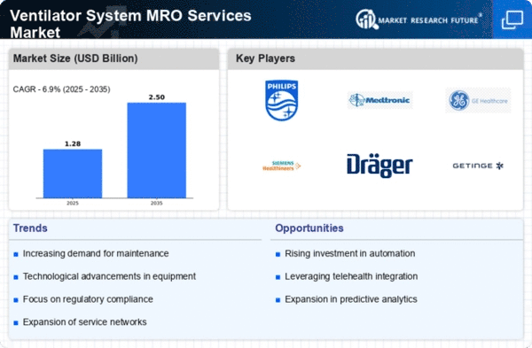 Technological innovations play a crucial role in shaping the Ventilator System MRO Services Market. The advent of advanced diagnostic tools and predictive maintenance technologies has transformed how ventilators are serviced and maintained. These innovations enable healthcare providers to monitor the performance of ventilators in real-time, allowing for timely interventions and reducing the risk of equipment failure. Furthermore, the integration of artificial intelligence and machine learning into maintenance protocols enhances the efficiency of MRO services, potentially reducing downtime and operational costs. As these technologies continue to evolve, they are likely to drive the demand for specialized MRO services tailored to the unique needs of ventilator systems, thereby expanding the Ventilator System MRO Services Market.