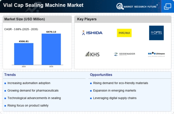 Europe's Vial Cap Sealing Machine market is projected to grow, with a market size of $1304.11M. The region benefits from a strong pharmaceutical industry, increasing investments in healthcare, and a growing emphasis on quality assurance. Regulatory frameworks, such as the EU's Falsified Medicines Directive, are driving demand for reliable sealing solutions, ensuring product integrity and safety. Germany and France are leading countries in this market, hosting several key players like Sartorius AG and KHS GmbH. The competitive landscape is marked by innovation and collaboration among manufacturers to meet evolving regulatory standards. As the market matures, companies are focusing on sustainable practices and advanced technologies to enhance their offerings.