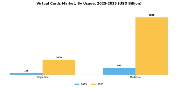 Technological innovations are a key driver of the Virtual Cards Market. Advancements in payment technologies, such as blockchain and artificial intelligence, are enhancing the security and efficiency of virtual card transactions. These technologies not only improve transaction speed but also reduce the risk of fraud, making virtual cards a more appealing option for consumers. The integration of advanced security features, such as biometric authentication, is likely to further bolster consumer confidence in virtual cards. As technology continues to evolve, the Virtual Cards Market is expected to adapt and innovate, offering new features that meet the changing demands of consumers. This ongoing technological evolution may play a crucial role in shaping the future of the market.
