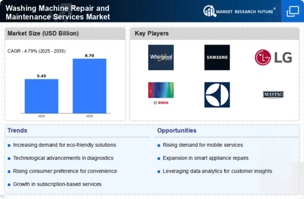 The Middle East and Africa region, with a market size of $0.4 billion, is gradually developing in the Washing Machine Repair and Maintenance Services Market. The growth is driven by increasing appliance ownership and a rising awareness of the importance of maintenance. Economic development in countries like South Africa and the UAE is leading to higher disposable incomes, prompting consumers to invest in repair services rather than new appliances. Regulatory frameworks promoting energy efficiency are also contributing to this trend. In this region, South Africa and the UAE are the leading markets, with a mix of local and international service providers. Key players include brands like Bosch and Samsung, which are establishing service networks to cater to the growing demand. The competitive landscape is characterized by a focus on customer service and quality, as consumers seek reliable solutions for their appliance maintenance needs. The market is expected to grow as more households recognize the value of professional repair services.