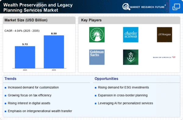 The Middle East and Africa region, with a market size of 0.05B, is in the nascent stages of developing Wealth Preservation and Legacy Planning Services. Factors such as increasing wealth concentration and a growing number of HNWIs are beginning to drive demand for these services. Regulatory frameworks are gradually evolving to support wealth management practices, which is essential for attracting both local and foreign investments.