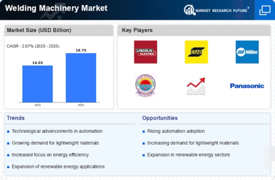 Technological advancements play a pivotal role in shaping the Welding Machinery Market. Innovations such as laser welding, friction stir welding, and robotic welding systems are revolutionizing traditional welding processes. These technologies not only improve the quality of welds but also enhance productivity and reduce operational costs. For instance, laser welding offers precision and speed, making it ideal for industries requiring high-quality joints. The market for laser welding equipment alone is expected to witness substantial growth, with estimates suggesting an increase of over 6% annually. As companies invest in state-of-the-art welding machinery, the overall efficiency and effectiveness of manufacturing processes are likely to improve, further driving the Welding Machinery Market.