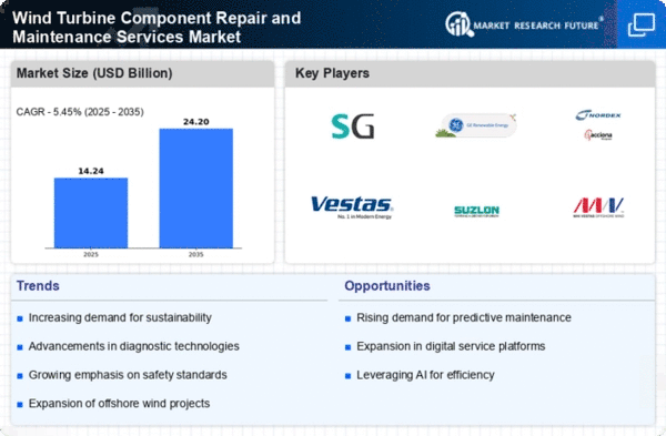 Germany, Spain, and Denmark are at the forefront of this market, hosting major players such as Vestas Wind Systems and Nordex. The competitive landscape is robust, with companies focusing on technological advancements and service efficiency to capture market share. The presence of established firms alongside new entrants is enhancing service offerings, making Europe a key player in The Wind Turbine Component Repair and Maintenance Services.