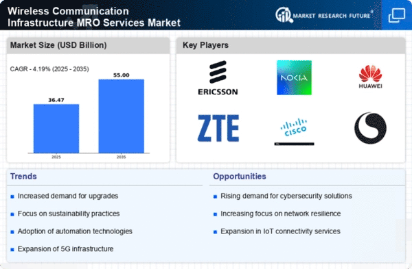 The Middle East and Africa region is gradually developing its Wireless Communication Infrastructure MRO Services Market, currently valued at $1.5 billion. The growth is driven by increasing mobile connectivity and investments in telecommunications infrastructure. Countries like South Africa and the UAE are making strides in enhancing their wireless communication capabilities, supported by government initiatives aimed at improving digital access.