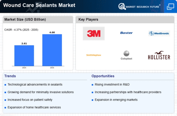 Europe's wound care sealants market is valued at 0.75B, reflecting a growing demand driven by an aging population and increasing incidences of chronic wounds. Regulatory frameworks, such as the EU Medical Device Regulation, are enhancing product safety and efficacy, thereby boosting consumer confidence. The region is witnessing a shift towards advanced wound care solutions, which is expected to further propel market growth. Leading countries like Germany, France, and the UK are at the forefront of this market, supported by strong healthcare systems and innovative research initiatives. Key players, including Smith & Nephew and Coloplast, are actively investing in R&D to introduce novel products. The competitive landscape is characterized by strategic partnerships and collaborations aimed at expanding market reach.