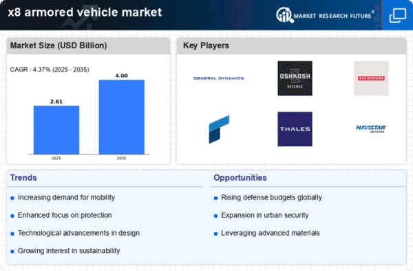 Europe's x8 armored vehicle market is valued at 0.75 billion, reflecting a growing emphasis on defense and security amid geopolitical tensions. The region is witnessing increased investments in military modernization and collaborative defense initiatives among EU nations. Regulatory frameworks are evolving to support enhanced defense capabilities, driving demand for advanced armored vehicles. Leading countries such as Germany, France, and the UK are at the forefront of this market, with companies like Rheinmetall and BAE Systems playing pivotal roles. The competitive landscape is marked by innovation and partnerships, as manufacturers strive to meet the diverse needs of European armed forces. The focus on interoperability and joint operations further enhances the market's growth potential.